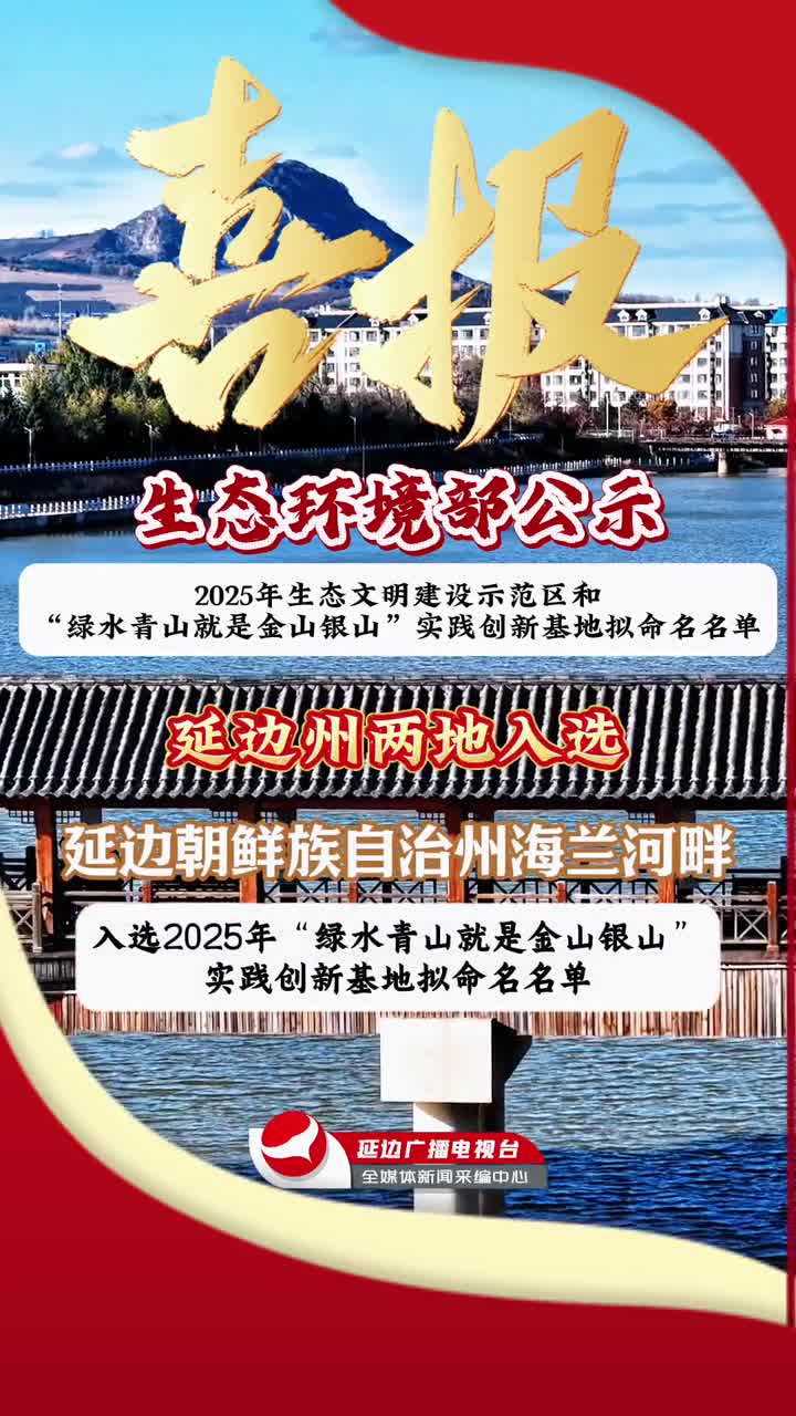 喜報!延邊2地 入選 2025年生態(tài)文明建設(shè)示范區(qū)和“綠水青山就是金山銀山”實踐創(chuàng)新基地擬命名名單